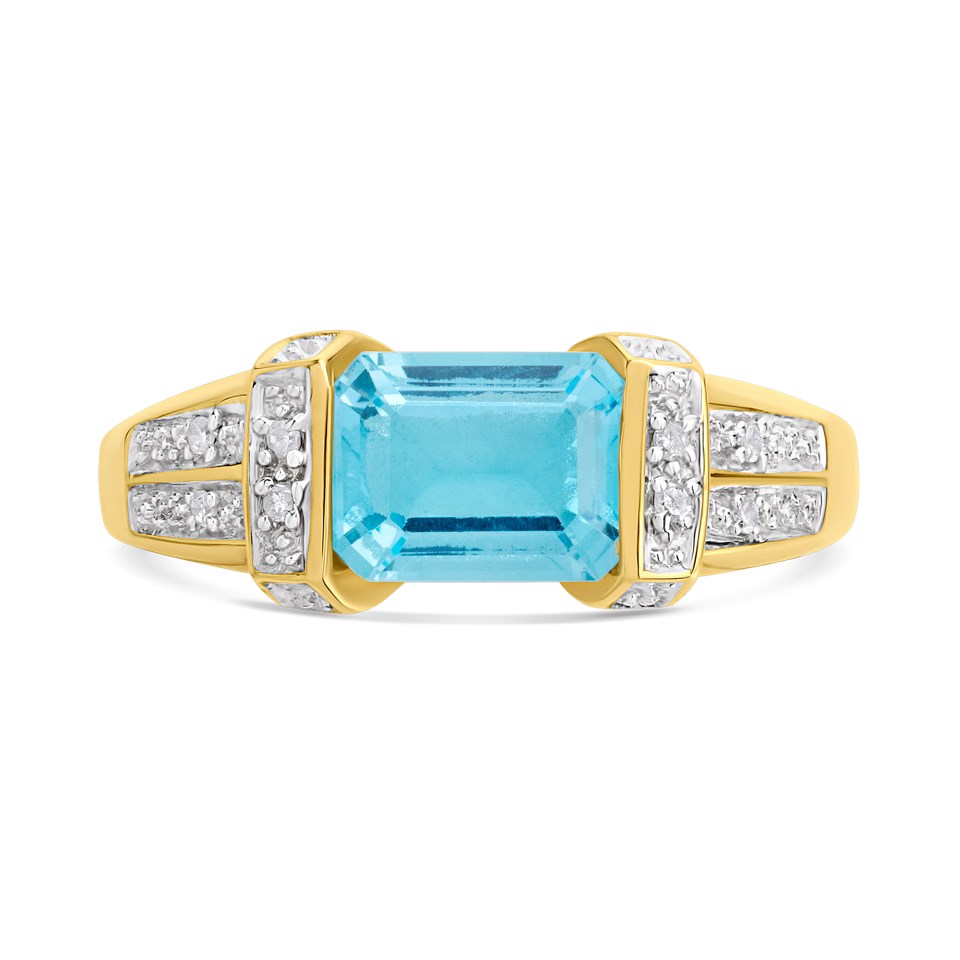 9ct Transverse Blue Topaz And Diamond Ring - D8489