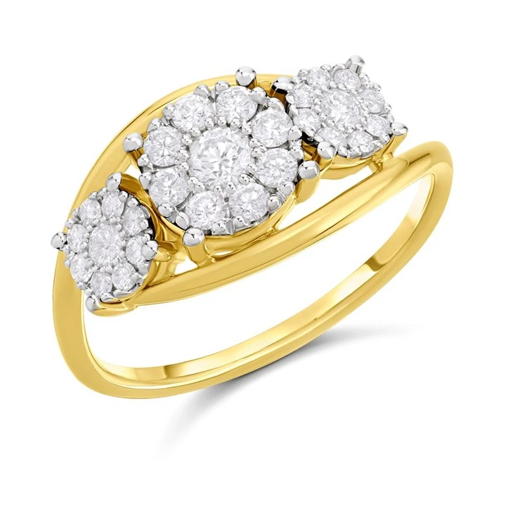 9ct Twist Diamond Trilogy Cluster Ring, 1/2ct - D5933