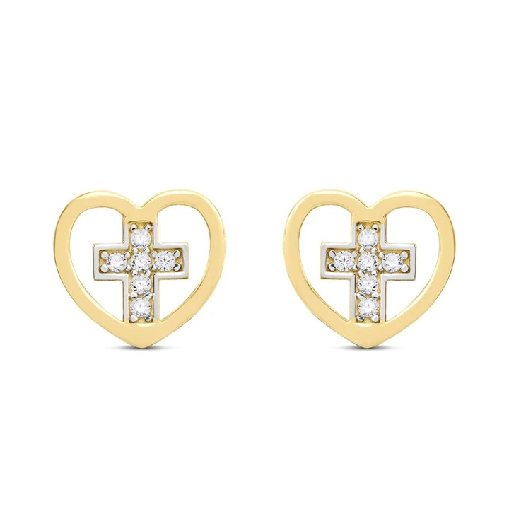 9ct Two Colour CZ Heart Cross Stud Earrings - G27139