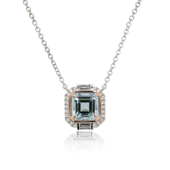9ct Two Colour Gold Aquamarine And Diamond Necklace - 24pts - D95139