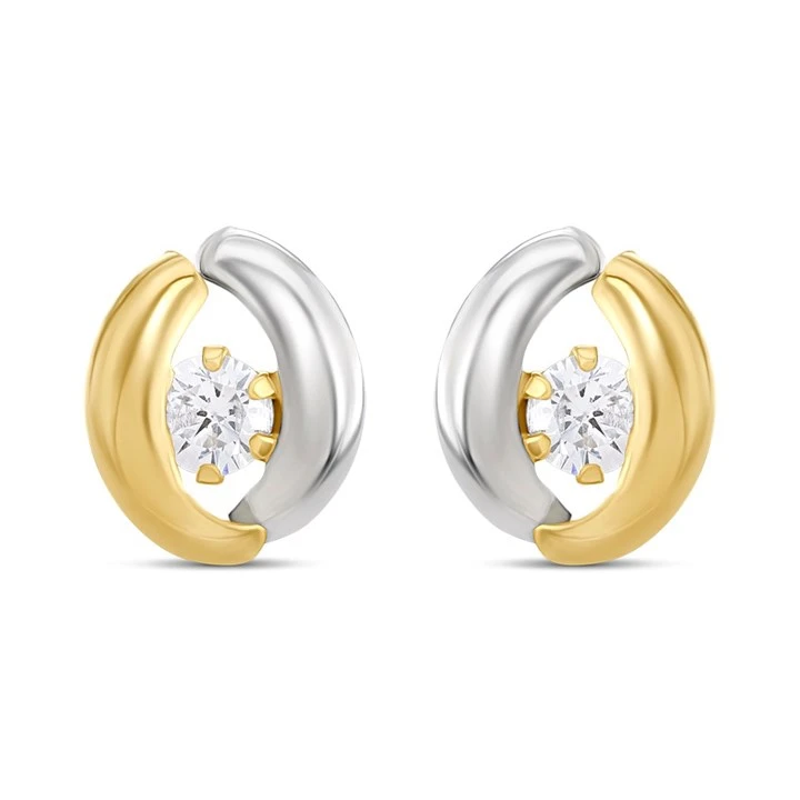 9ct Two Colour Gold CZ Stud Earrings - G3204
