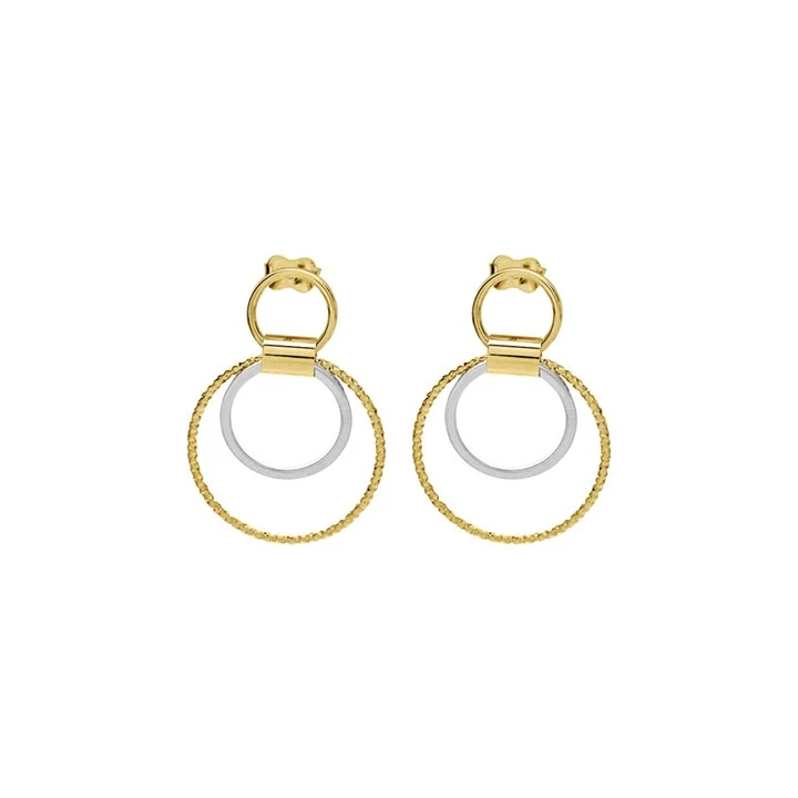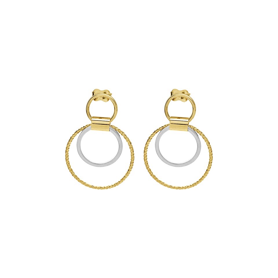 9ct Two Colour Gold Circle Drop Earrings - G1492