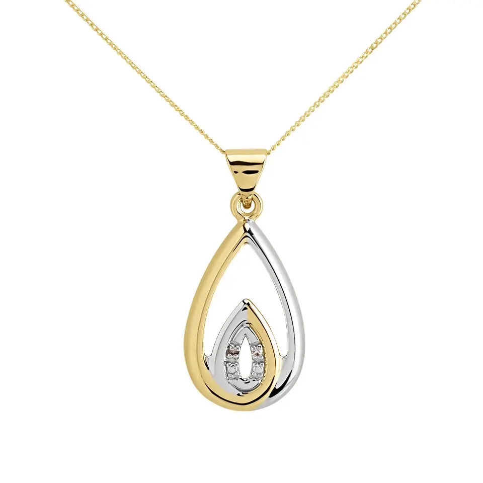9ct Two Colour Gold Diamond Teardrop Necklace - R69111