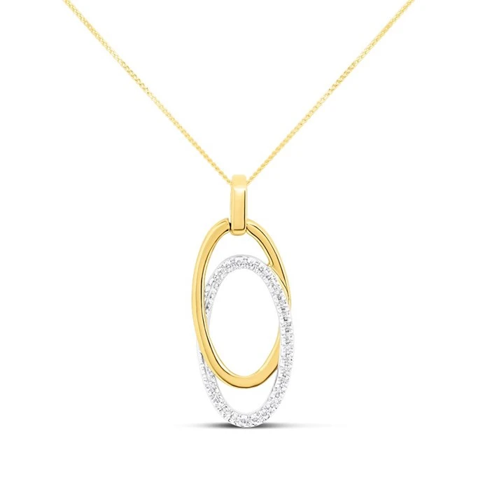 9ct Two Colour Gold Double Oval Diamond-Set Necklace - D95155
