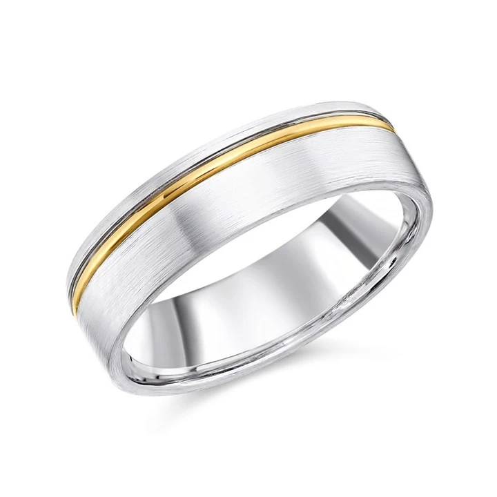 9ct Two Colour Gold Flat Court Wedding Ring - 6mm - X20620