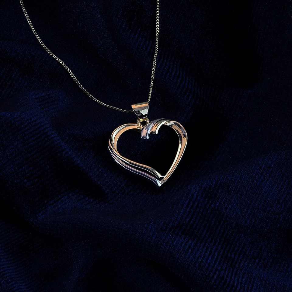 9ct Two Colour Gold Heart Necklace - R8809