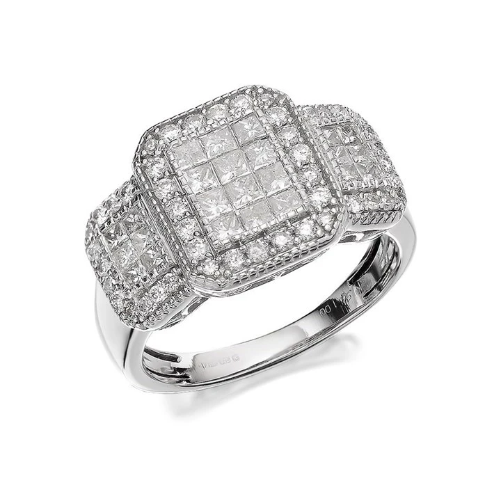 9ct White Gold 1 Carat Diamond Trio Cluster Ring - D7287