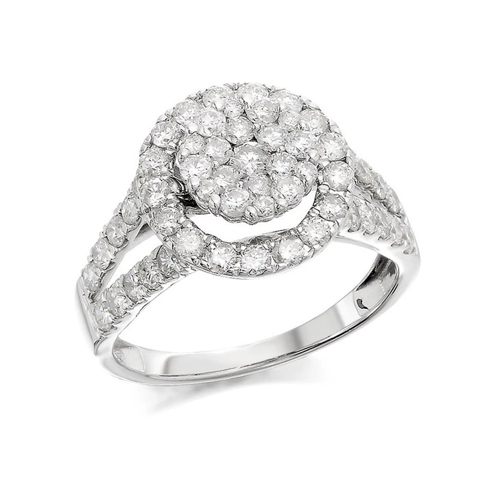 9ct White Gold 1.5 Carat Diamond Halo Cluster Ring - D71105