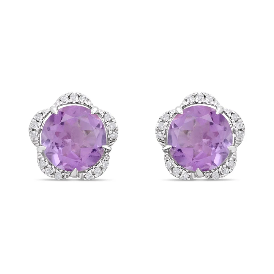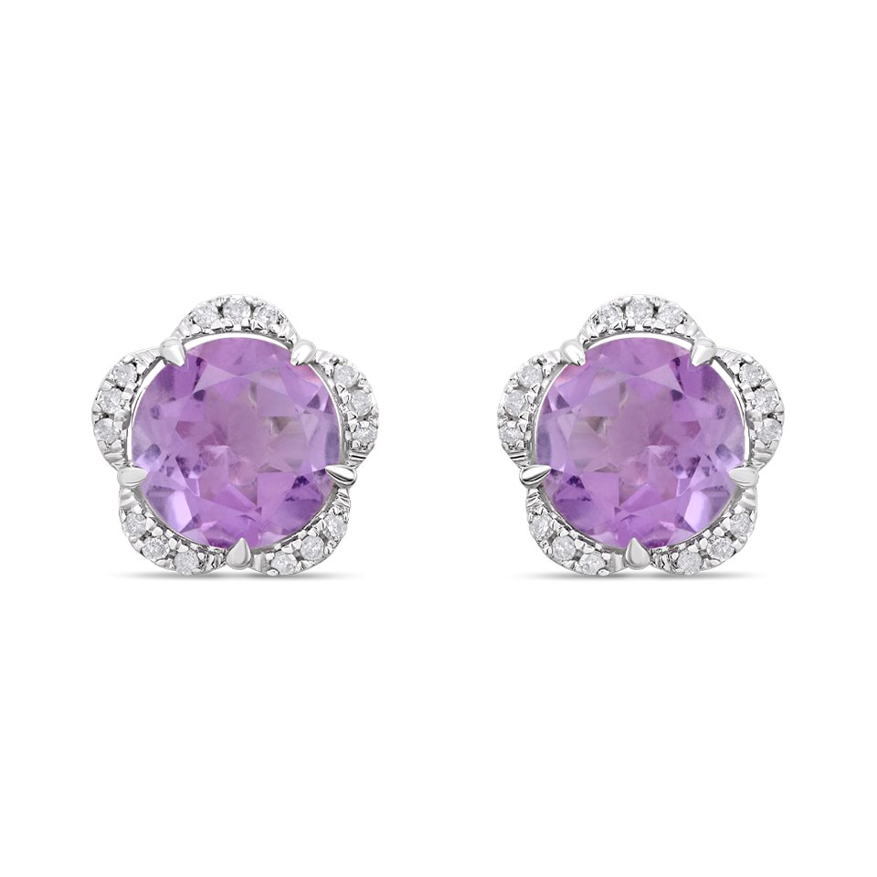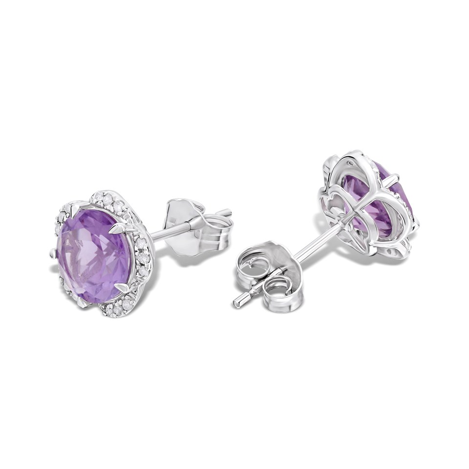 9ct White Gold Amethyst And Diamond Stud Earrings - D94126
