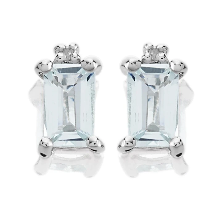 9ct White Gold Aquamarine And Diamond Stud Earrings - G0467