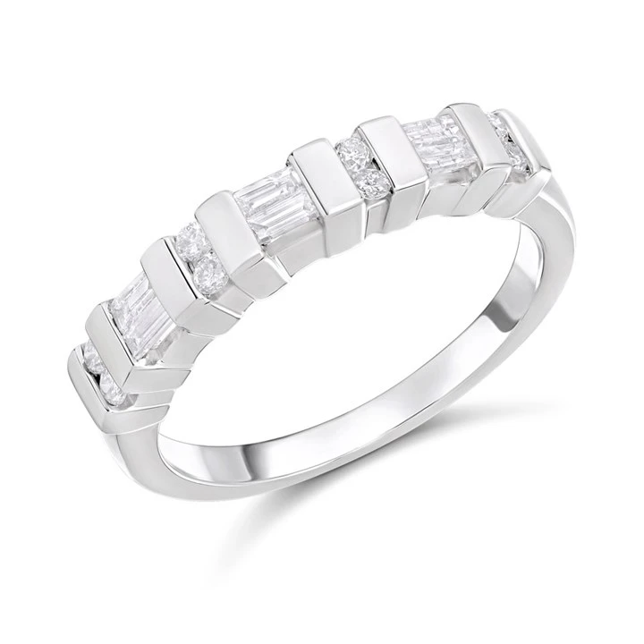 9ct White Gold Baguette And Round Brilliant Cut Diamond Half-Eternity Ring, 36pts - D72142