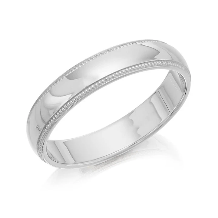 9ct White Gold Beaded Edge Wedding Ring - 4mm - X20096