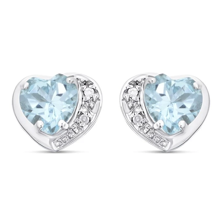 9ct White Gold Blue Topaz And Diamond Heart Stud Earrings - 7mm - G0320