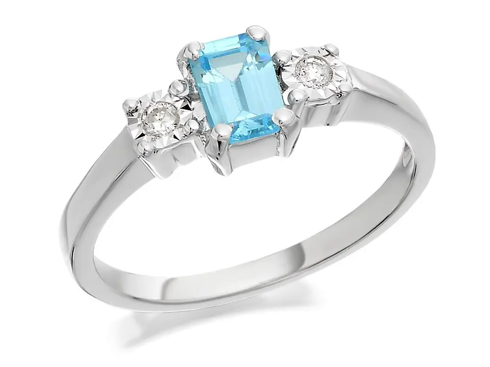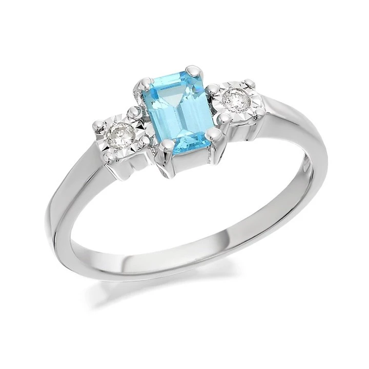 9ct White Gold Blue Topaz And Diamond Trilogy Ring - 6pts - D7943