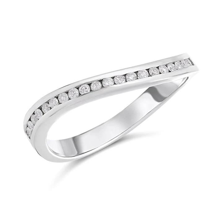 9ct White Gold Channel-Set Diamond Wave Half Eternity Ring, 15pts - D72152