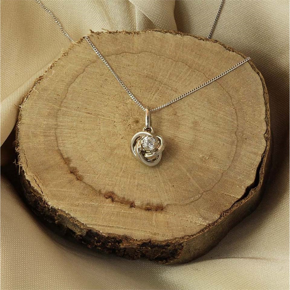 9ct White Gold Cubic Zirconia Knot Necklace - R6980