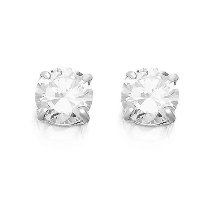 9ct White Gold Cubic Zirconia Solitaire Stud Earrings - 5mm - G3006
