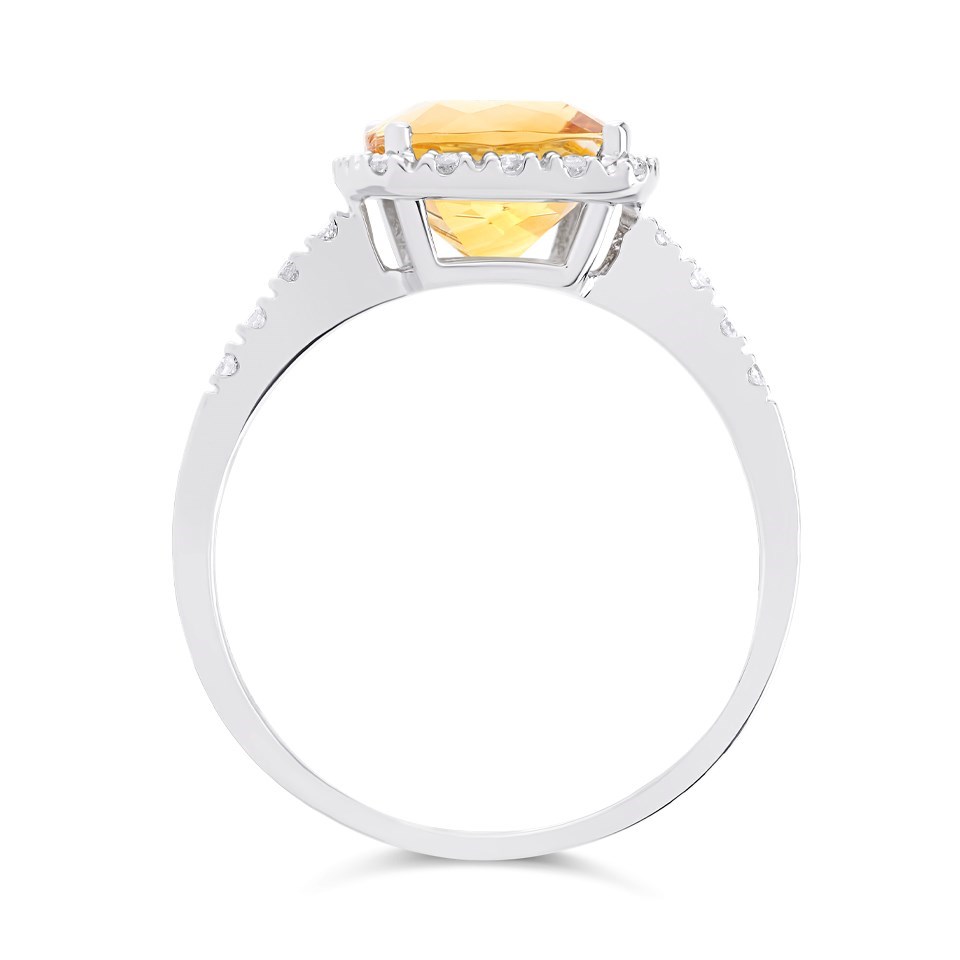 9ct White Gold Cushion Citrine And Diamond Cluster Ring - 10pts - d63159