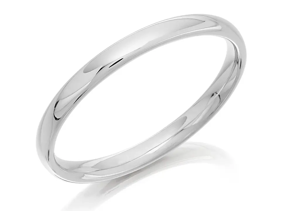 9ct White Gold D Shaped Wedding Ring - 2mm - X20116