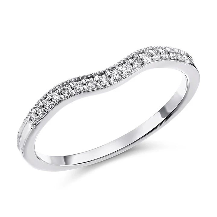 9ct White Gold Diamond Beaded Edged Shaped Wedding Ring - 9pts - X20576