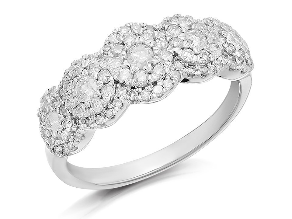 9ct White Gold Diamond Cluster Band Ring - 3/4ct - D68101