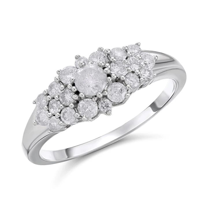 9ct White Gold Diamond Cluster Ring - 3/4ct - D66146