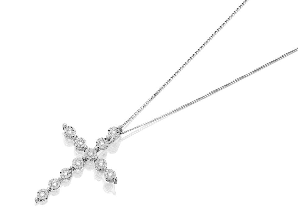 9ct White Gold Diamond Cross And Chain - 5pts - D5647