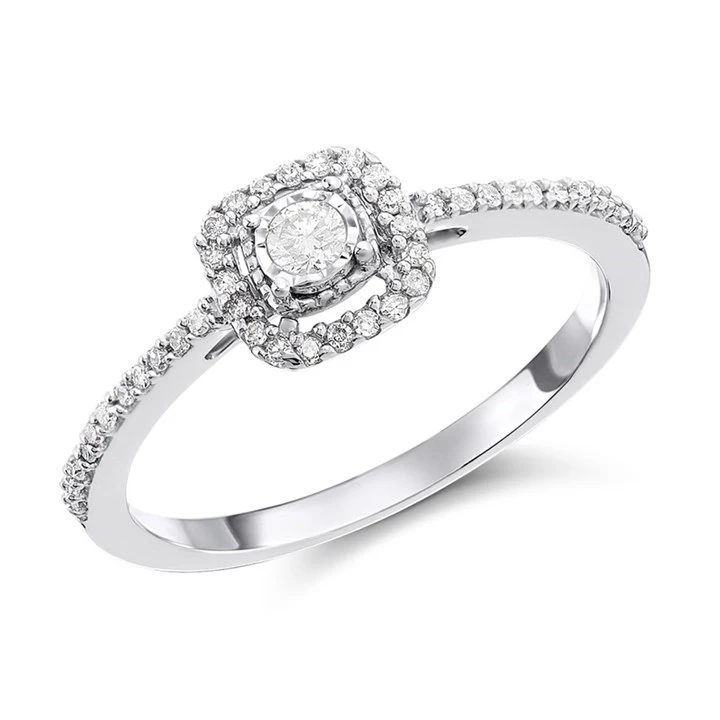 9ct White Gold Diamond Cushion Halo Cluster Ring - 15pts - D66129