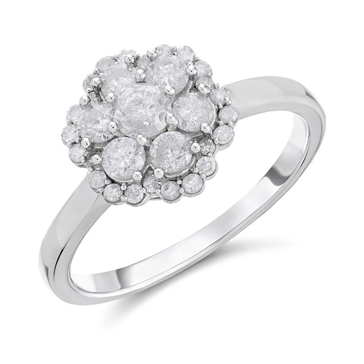 9ct White Gold Diamond Daisy Cluster Ring - 3/4ct - D66145