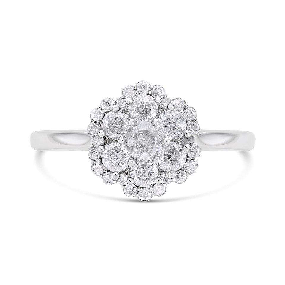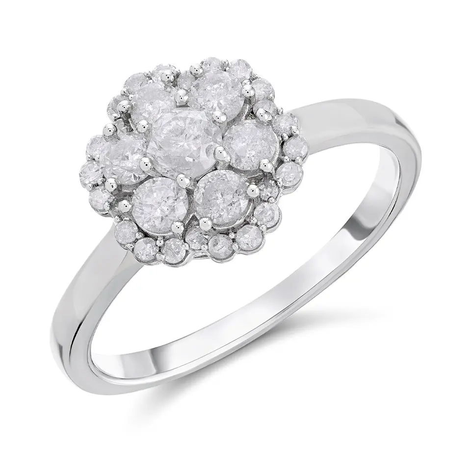 9ct White Gold Diamond Daisy Cluster Ring - 3/4ct - d66145