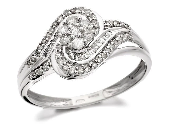 9ct White Gold Diamond Daisy Swirl Cluster Ring - 1/2ct - D6319