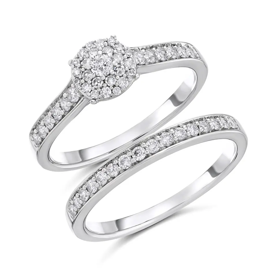 9ct White Gold Diamond Engagement Ring And Wedding Ring Set - 1/2ct - D32141