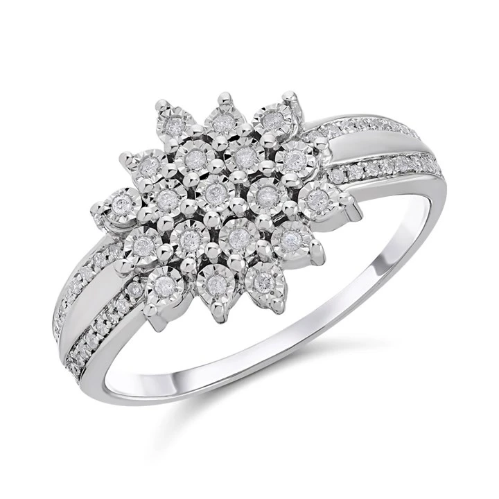 9ct White Gold Diamond Flower Cluster Ring - 15pts - D71217