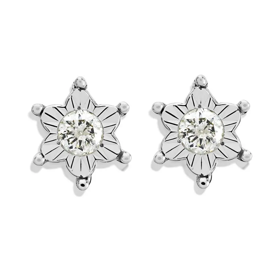 9ct White Gold Diamond Flower Stud Earrings - 15pts per pair - D54124