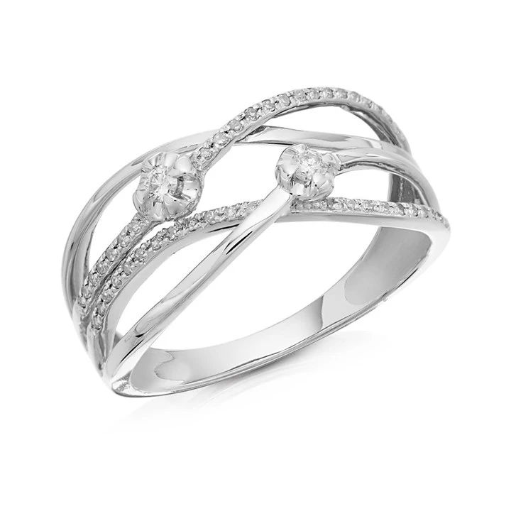 9ct White Gold Diamond Four Strand Weave Ring - 15pts - D72229
