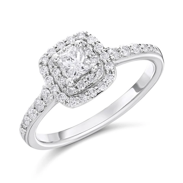 9ct White Gold Diamond Halo Cluster Ring - 1/2ct - D68205