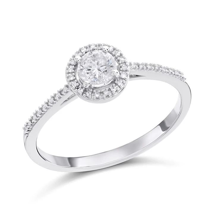 9ct White Gold Diamond Halo Cluster Ring - 35pts - D68121