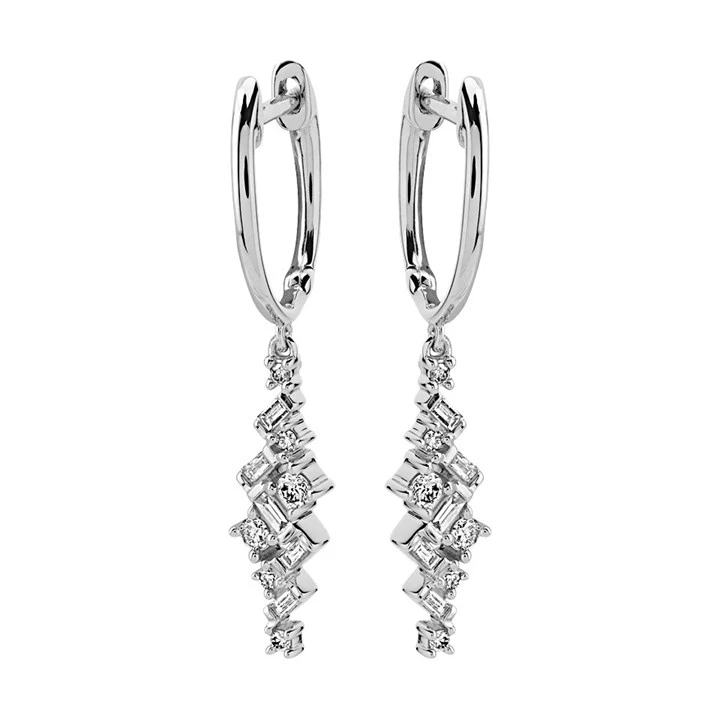9ct White Gold Diamond Hoop Drop Earrings - 20pts per pair - D9682