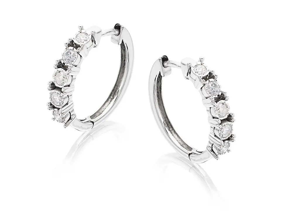 9ct White Gold Diamond Hoop Earrings - 35pts - D9657