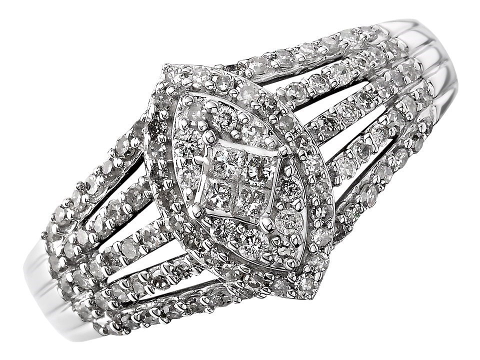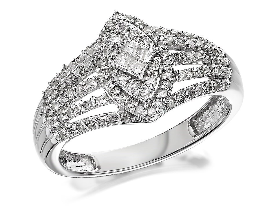 9ct White Gold Diamond Marquise Band Ring - 1/2ct - D7226