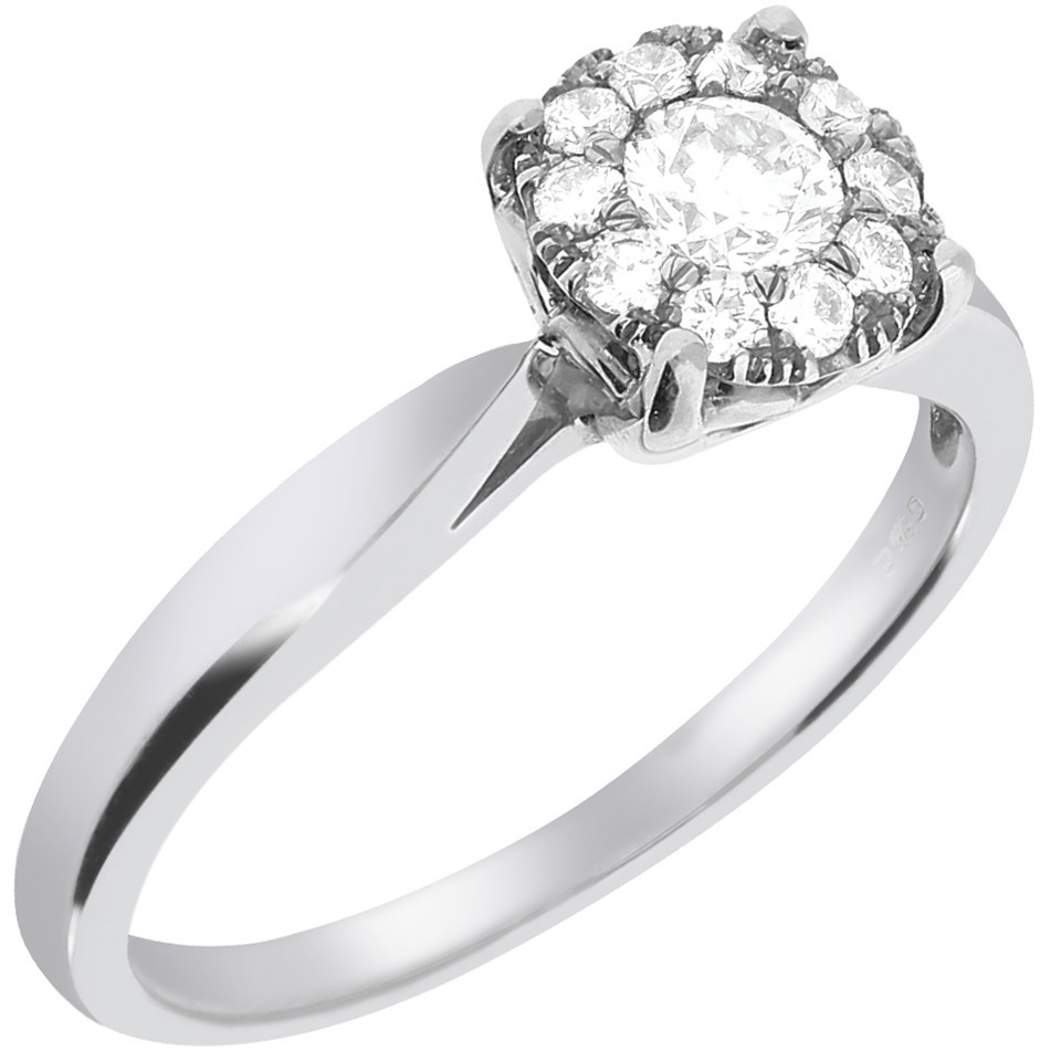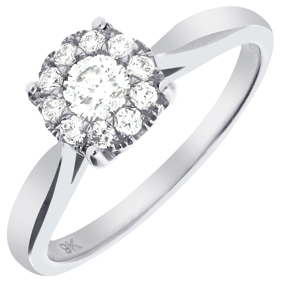 9ct White Gold Diamond Starburst Cluster Ring - 35pts - X10195