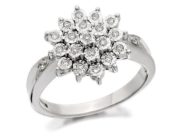 9ct White Gold Diamond Three Tier Cluster Ring - 12pts - D6684