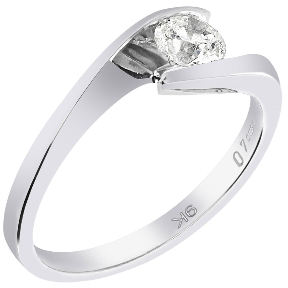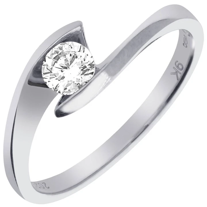 9ct White Gold Diamond Twist Solitaire Ring - 40pts - X10055