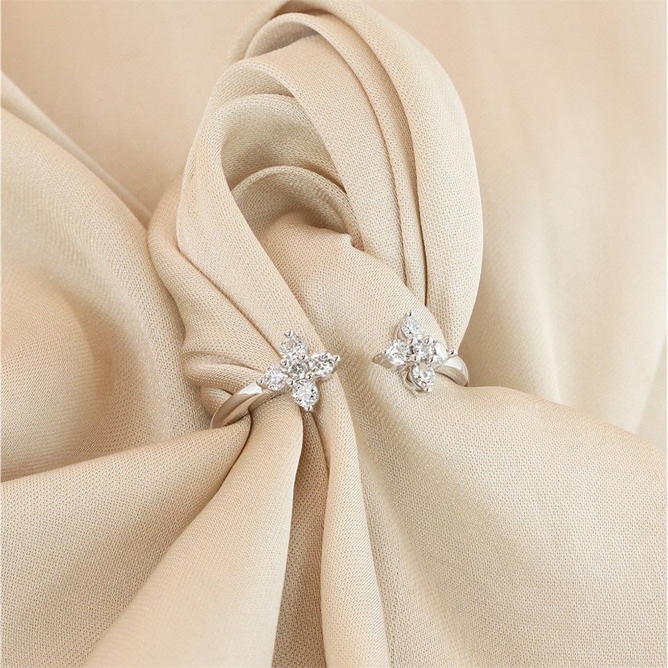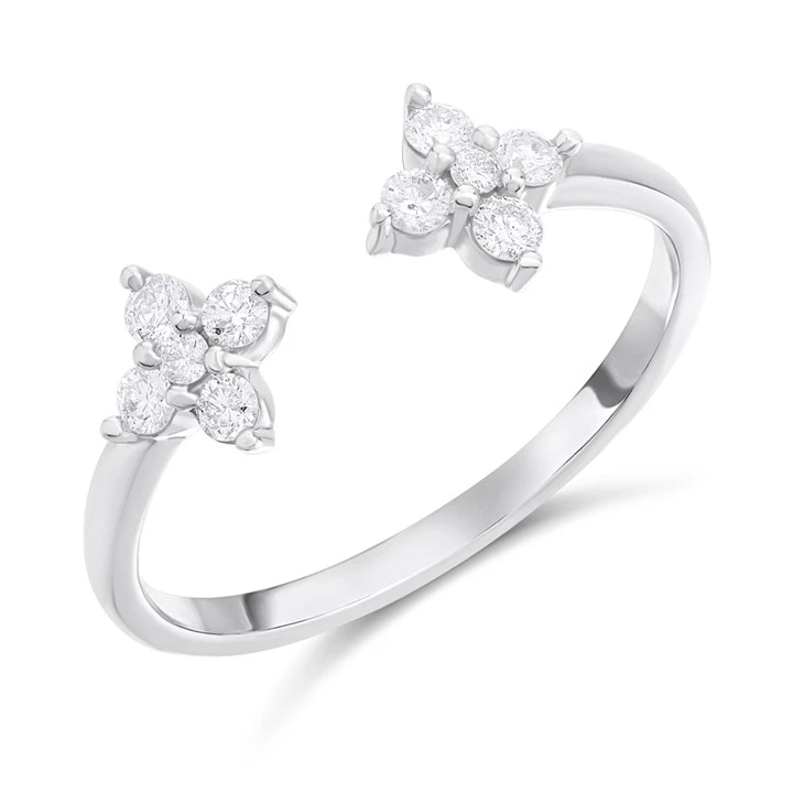 9ct White Gold Diamond-Set Clover Torc Ring, 1/4ct - D72160