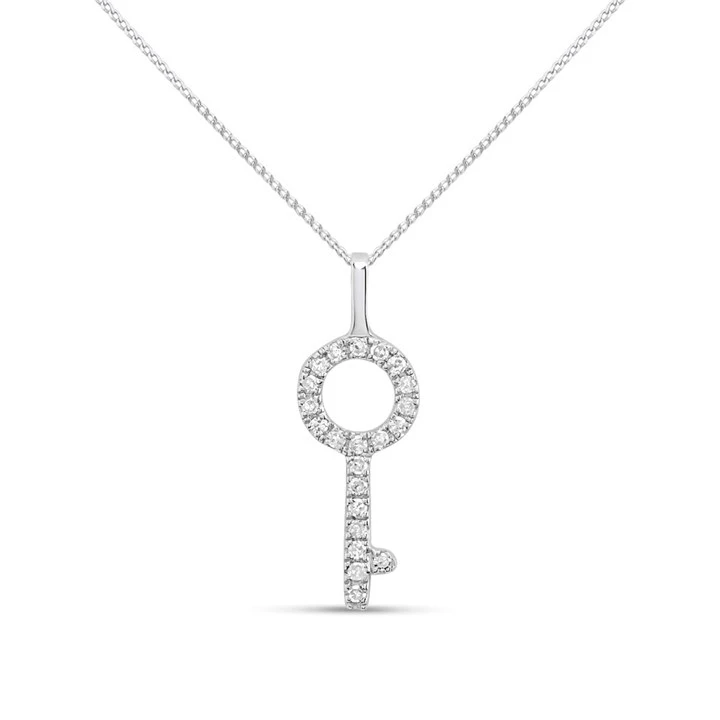 9ct White Gold Diamond-Set Key Necklace - D56164