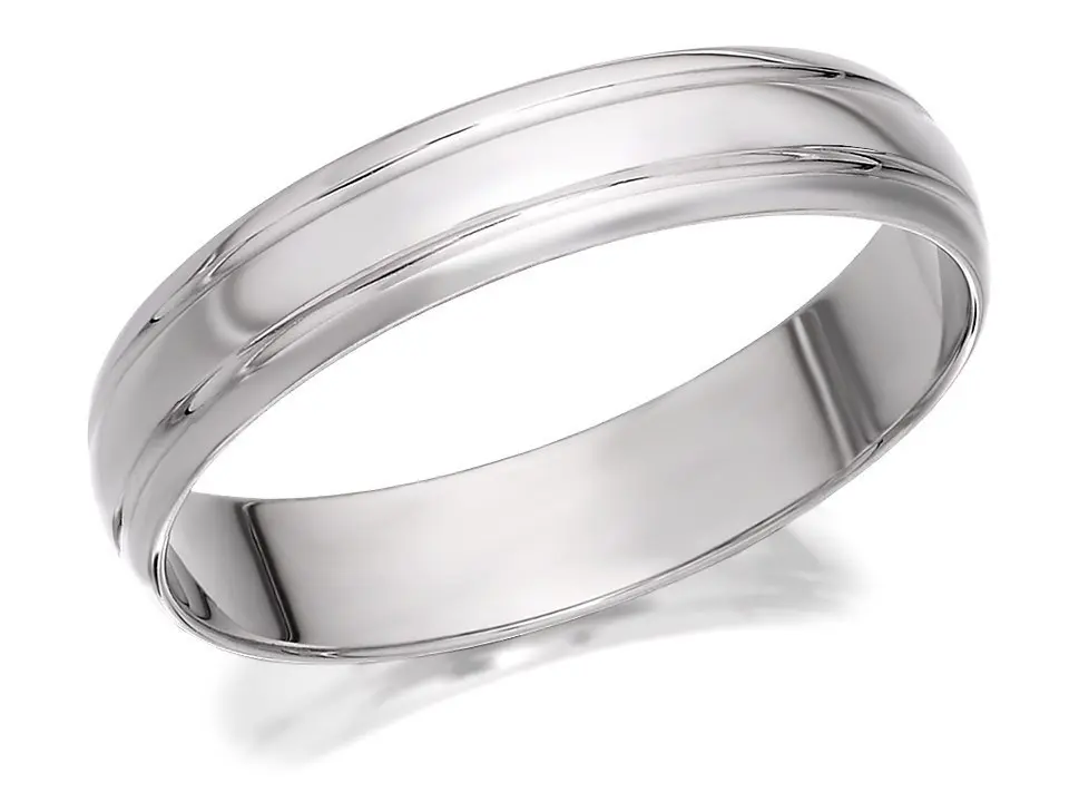 9ct White Gold Double Banded Wedding Ring - 4mm - R2493