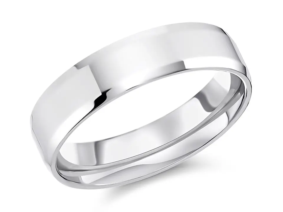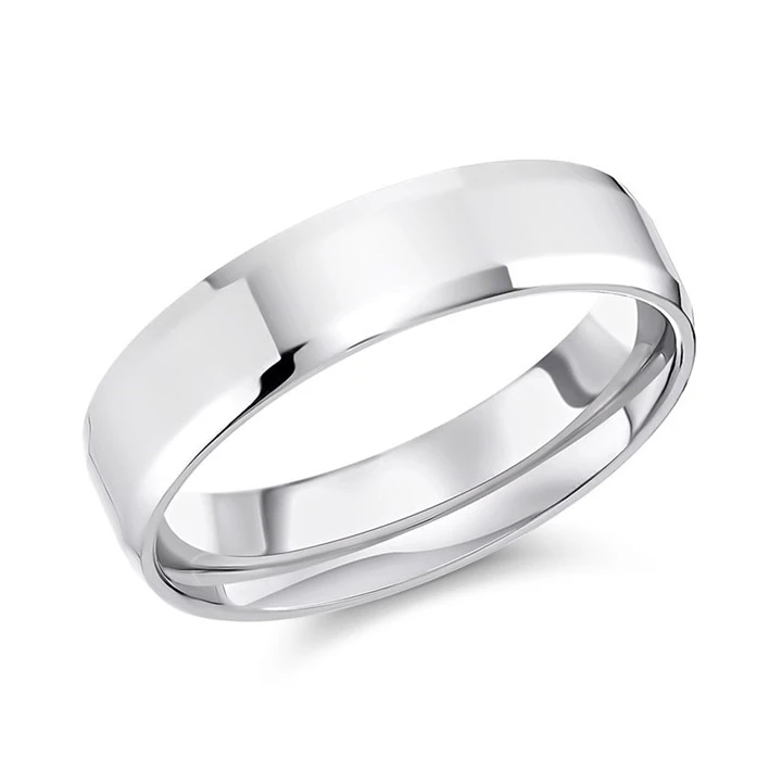 9ct White Gold Flat Beveled Edge Wedding Ring - 5mm - X20102