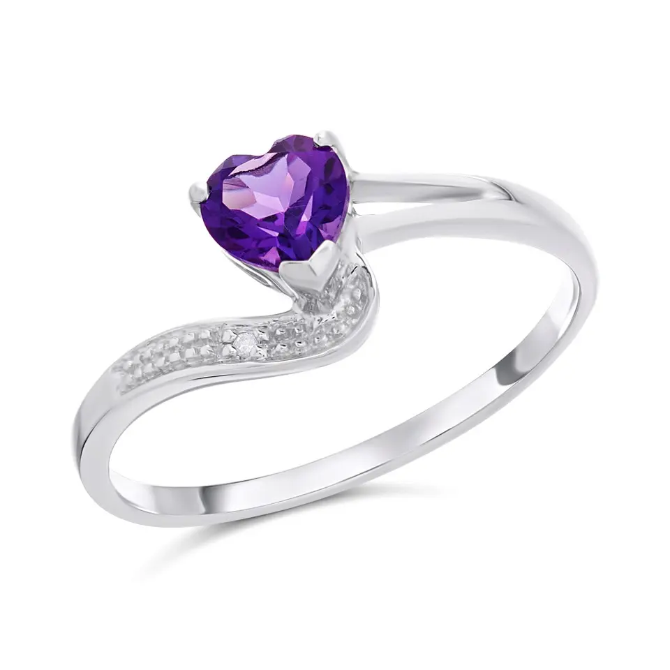 9ct White Gold Heart Amethyst And Diamond Ring - X10754