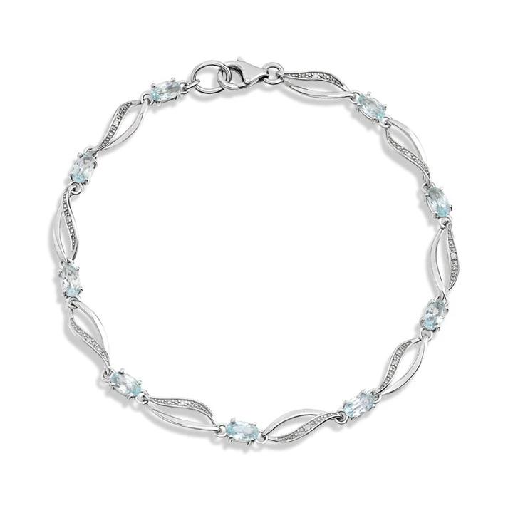 9ct White Gold Oval Blue Topaz And Diamond Bracelet - D95170