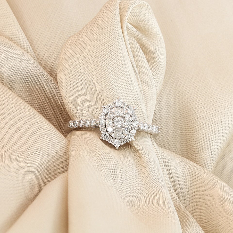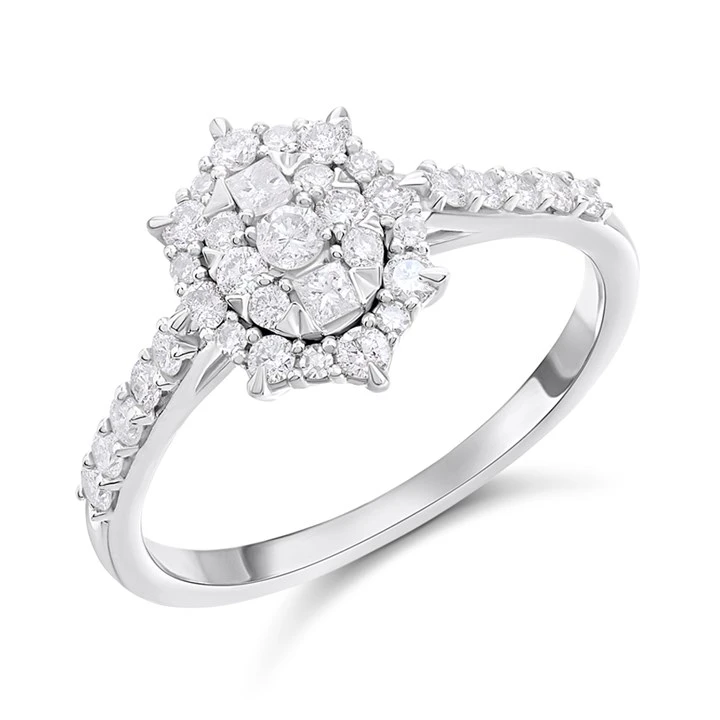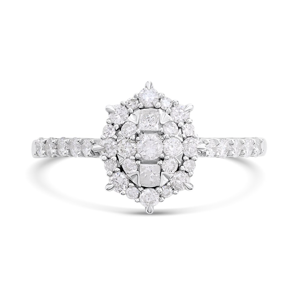 9ct White Gold Oval Diamond Cluster Ring, 1/2ct - D72159